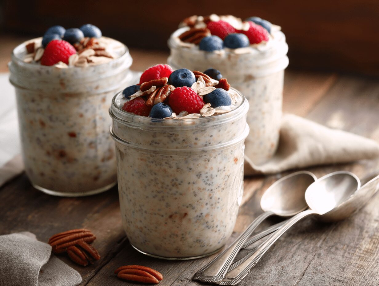 almond milk oats chia seed oats creamy overnight oats customizable oats easy breakfast recipes grab-and-go breakfast healthy overnight oats meal prep breakfast no-cook oatmeal overnight oats recipe